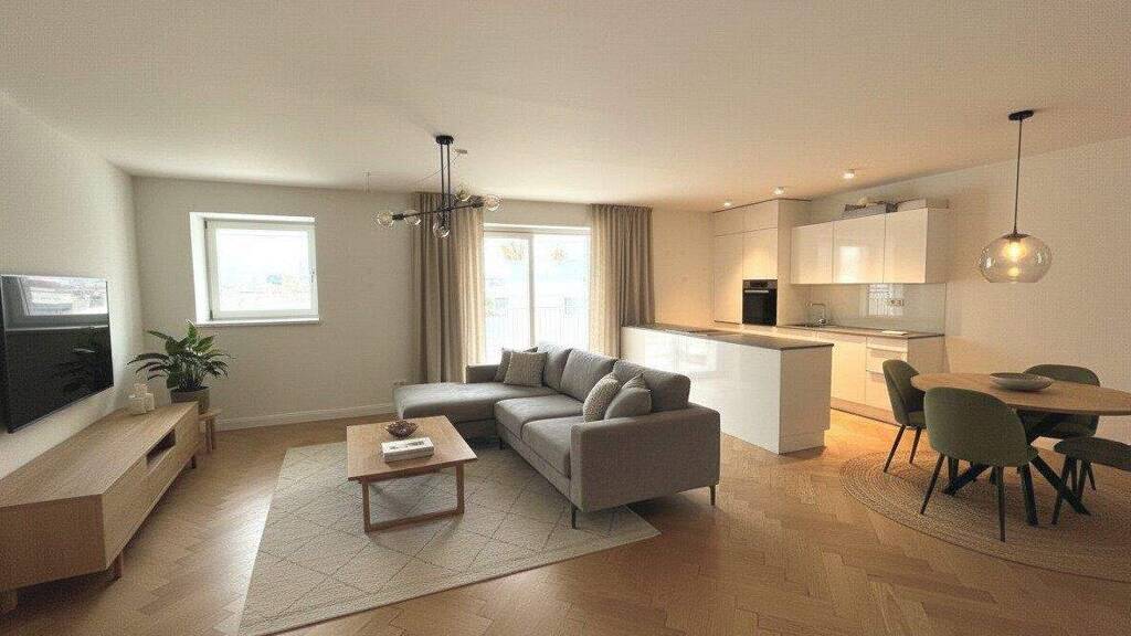 Bei den möblierten Fotos handelt es sich um virtuelles Homestaging, das Objekt wird unmöbliert vermietet, Küche/Badezimmer bleiben im Objekt.