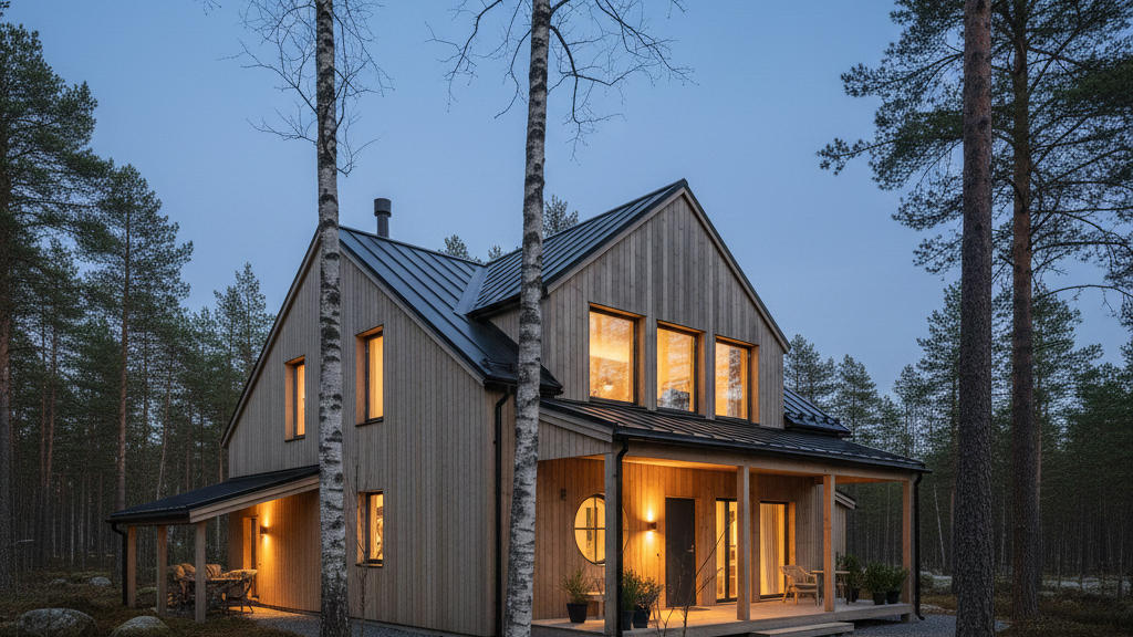Moderner skandinavischer Wohntraum: Minimalistisches Holzhaus in idyllischer Waldrandlage