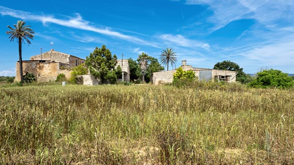 Das weitläufige Außengelände bietet fruchtbare Ackerflächen, die sich ideal für diverse landwirtschaftliche Nutzungen eignen. Neben dem Haupthaus befinden sich alte Ställe und Lager, die an die landwirtschaftliche Vergangenheit des Anwesens erinnern. Ein besonderes Highlight ist die traditionelle mallorquinische Mühle. Darüber hinaus sorgen moderne Wassersysteme, darunter ein in den 1950er Jahren modernisierter Wasserspeicher und ein Brunnen, für eine zuverlässige Wasserversorgung.