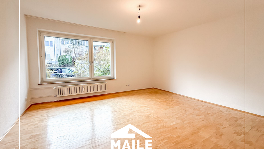 Geradeaus rechts öffnet sich das große, lichtdurchflutete Wohnzimmer. Die tief angesetzten Fenster sorgen für ein besonders freundliches, helles Wohnambiente. Zusätzlich führt der Flur in ein weiteres Zimmer, das sich ideal als Arbeits- oder Gästezimmer eignet.