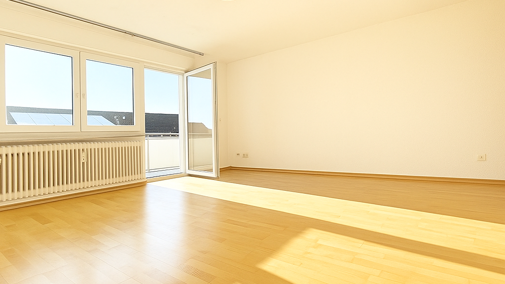 Betreten Sie das Wohnzimmer und spüren Sie die Eleganz, die der Echtholzparkettboden ausstrahlt. Der angrenzende großzügige Balkon ist mit einer Markise ausgestattet und lädt zu entspannenden Stunden im Freien ein.