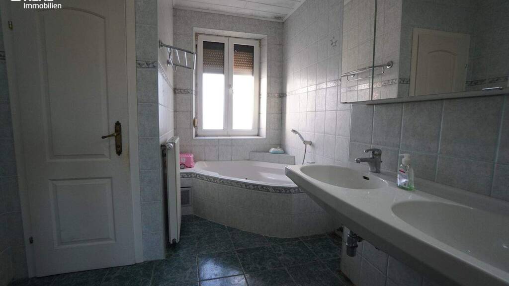 * Badezimmer mit Badewanne, Dusche und Waschtisch