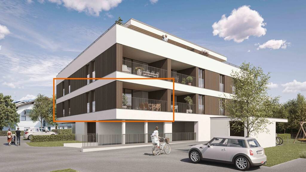 Das Gebäude besticht durch klare, elegante Architektur mit vertikal angeordnetem Verputz, Holz und raumhohen Fenstern. Die Wohnanlage mit 14 Einheiten fügt sich harmonisch in die Umgebung ein und ist über ein zentrales, barrierefreies Treppenhaus mit Lift erreichbar. Im Erdgeschoss befinden sich drei Wohnungen und ein Büro, jeweils mit Gartenanteil. Die Obergeschosse bieten Loggien oder Terrassen. Alle Wohnbereiche sind mit Eichenparkett ausgestattet und verfügen über elektrische Jalousien oder Senkrechtmarkisen. Fußbodenheizung sorgt für angenehme Wärme. Im Untergeschoss gibt es Kellerabteile, einen Fahrradraum und eine Tiefgarage mit 13 Stellplätzen für Elektromobilität. Das Heizsystem kombiniert eine Wärmepumpe mit Erdsonde und eine Photovoltaikanlage. Hochwertige Wärmedämmung und 3-fach verglaste Holzfenster gewährleisten Energieeffizienz.