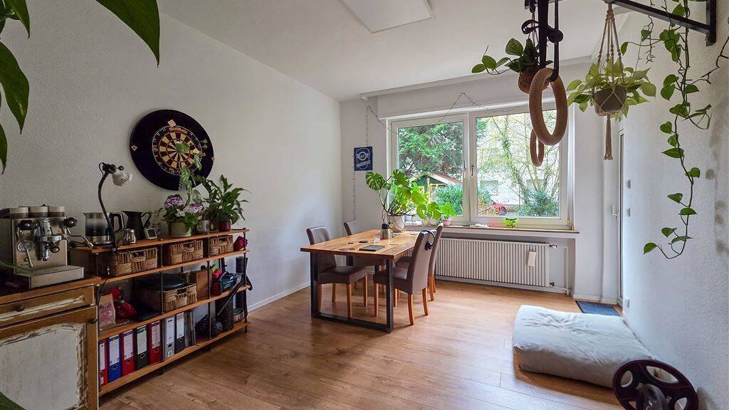 Die voll vermietete Kapitalanlage mit insgesamt vier Wohneinheiten bietet eine Gesamtwohnfläche von rund 275 m². Das Objekt besticht durch eine durchdachte Aufteilung und bietet insbesondere im Erdgeschoss eine architektonisch interessante Besonderheit, da dieses ehemalige Ladenlokal zu einer großzügigen, etwa 80 m² umfassenden Wohneinheit umgebaut wurde. Diese Erdgeschosswohnung verfügt neben einem Flur, einem Badezimmer, einem Wohnzimmer, einem Büro und einem Schlafzimmer auch über einen direkten Zugang zum eigenen Garten sowie eine einladende Terrasse.