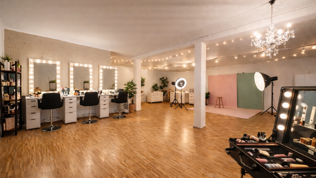 Über den separaten Treppeneingang eines Designbürokomplexes gelangen Sie in die geräumige Studiofläche im Untergeschoss. Hier haben Sie Platz um sich zu entfalten. Im hinteren Bereich der Fläche befinden sich separate Frauen- und Herren-Toiletten mit Waschbecken.