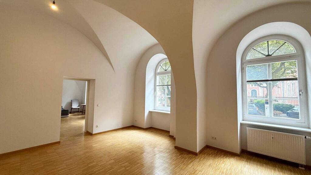 Diese Immobilie befindet sich in einem der historisch bedeutendsten Gebäudeensembles Bad Reichenhalls – der Alten Saline. Die Einheit liegt im Hochparterre eines unter Denkmalschutz stehenden Bauwerks aus dem Jahr 1839. Sie bietet eine Gesamtfläche von ca. 122 m², verteilt auf drei großzügige und helle Räume sowie eine separate, große Abstellkammer. Die Raumhöhe, die Gewölbedecken und der Holzboden vermitteln ein besonderes Raumgefühl mit historischem Charakter. Dank der großen Fensterflächen ist die Einheit hell und offen – sowohl für gewerbliche Nutzung als auch für eine spätere Umnutzung zu Wohnzwecken ideal geeignet. Derzeit ist die Fläche auf eine gewerbliche Nutzung ausgerichtet und mit zwei separaten WCs ausgestattet. Es liegen jedoch bereits Pläne für den Einbau eines Badezimmers vor, sodass mit relativ geringem Aufwand eine Umnutzung als großzügige 2-Zimmer- Wohnung denkbar ist. Die Einheit überzeugt durch ihre zentrale Lage: Die Fußgängerzone von Bad Reichenhall ist in wenigen Minuten fußläufig erreichbar. Der direkte Blick auf die Alte Saline unterstreicht die besondere Lage und den historischen Kontext der Immobilie. Ein Kellerabteil sowie eine Duplexgarage gehören zur Einheit und runden das Angebot ab. Die flexible Nutzungsmöglichkeit – ob als Büro, Atelier, Praxis, Ausstellungsraum oder später als Wohnraum – in Kombination mit der besonderen Lage und der historischen Substanz machen dieses Objekt zu einer seltenen Gelegenheit in Bad Reichenhall.