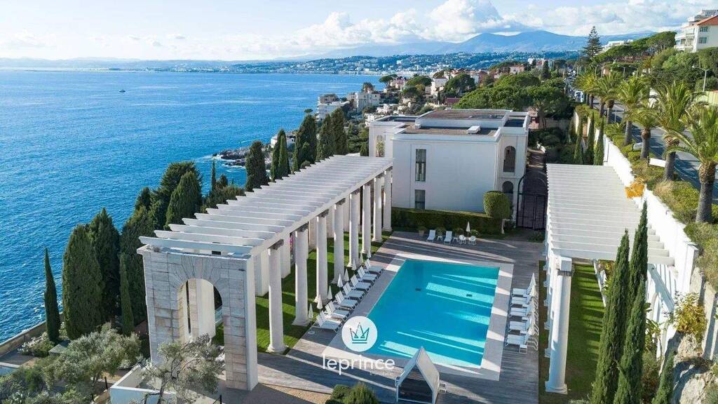Cap de Nice / Mont-Boron: In einem prestigeträchtigen Palast, der über das Mittelmeer thront, eröffnet sich dieses luxuriöse Duplex von 480 m², südlich ausgerichtet, das sich um großzügige Räume, außergewöhnliche Helligkeit und eine permanente Öffnung zum Meer herum organisiert.