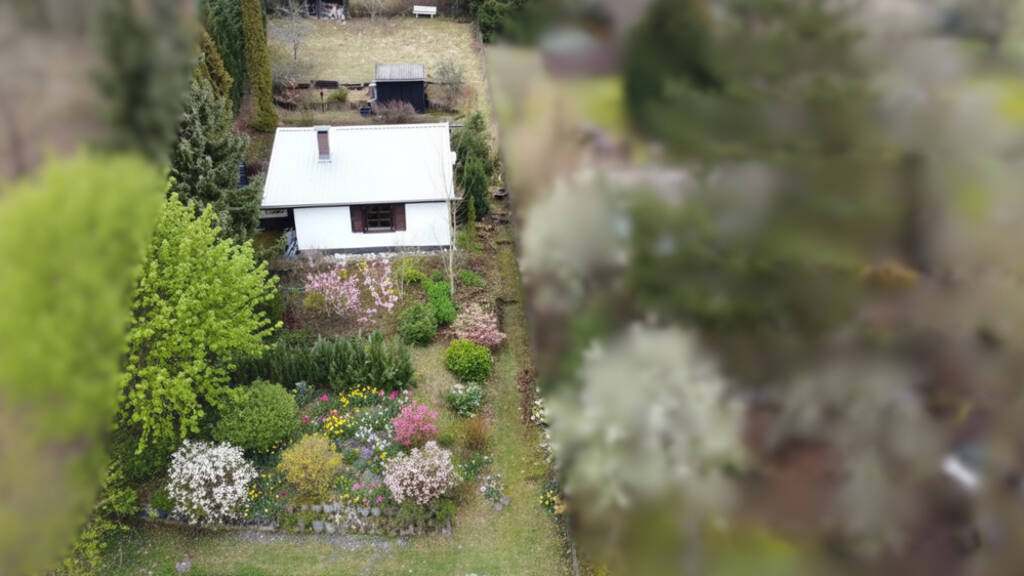 Über eine Treppenanlage gelangen Sie zum in der oberen Grundstückshälfte gelegenen Wochenendhaus (ca. 7 x 7 Meter). Das ursprünglich 1981 errichtete Häuschen wurde im Jahr 2020 umfassend modernisiert. Im Zuge der Renovierung wurden unter anderem das Dach erneuert, neue Elektroleitungen verlegt, ein Elektro-Heizkörper & neue Steckdosen angebracht, das ehemalige WC durch ein kleines Duschbad ersetzt und der Küchenbereich zeitgemäß gestaltet. Ein separater Schlafbereich sowie eine Terrasse runden das Raumangebot ab.