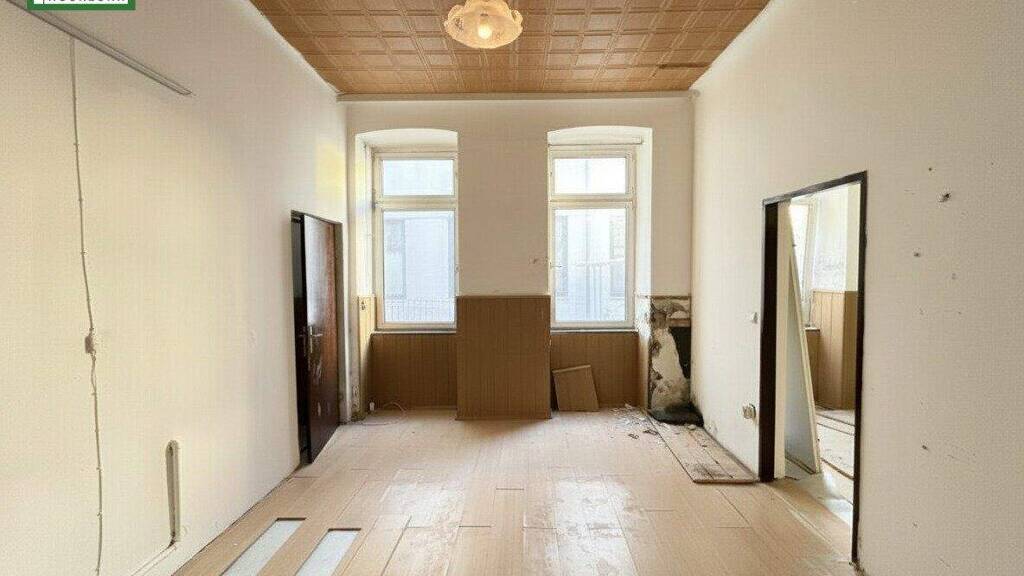 Die Wohnung befindet sich in einem renovierungsbedürftigen Zustand und bietet daher viel Potenzial zur persönlichen Adaptierung oder zur Aufwertung als Anlageobjekt.