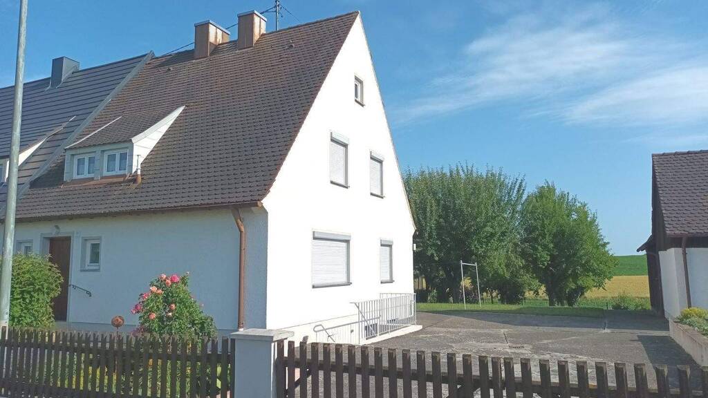 Sie kaufen eine schnuckelige Doppelhaushälfte mit großem Garten, der im Sommer durch eine Vielzahl an Obstbäumen hervorragend Schatten spendet. Auf der Südterrasse genießen Sie in Ihrer Freizeit die Ruhe mit Blick auf die angrenzenden Feldern. Das Haus besitzt eine sehr gute Bausubstanz, die immer erhalten wurde z. B. durch Erneuerung der Heizung, Austausch verschiedener Fenster,... Mit der Raumaufteilung stehen Ihnen viele Nutzungsmöglichkeiten offen. Auch das 2. WC im Dachgeschoss wertet die Etage nochmals auf.
