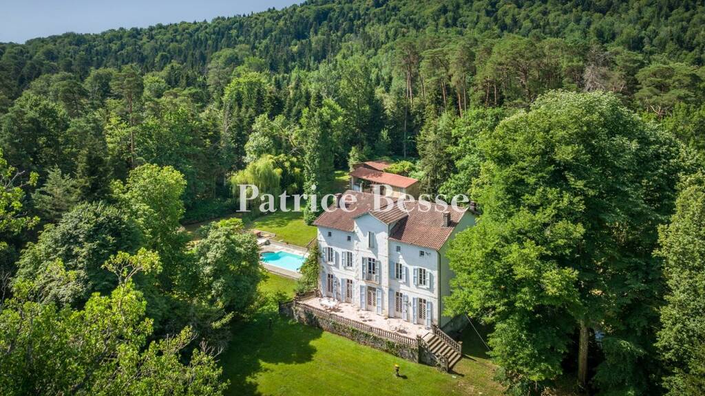 Invisible from the road, you discover the house when you turn a bend in a woodland path. It is sheltered behind a green wall of Scots pines, limes, ancient oaks, ferns and peaceful clearings. As if set down inside a bubble of greenery, it forms a discreet, almost secret unit with its outbuildings, swimming pool, pond and driveways, enveloped in more than 10 hectares of landscaped parkland and ancient forest. Most of the buildings have stone walls, some of which are rendered, and gable roofs with interlocking tiles. The three-storey residence, with almost 650 m² of living space, was probably built at the end of the 19th century and has been patiently restored after a period of neglect. Each stage of the work was guided by meticulous restoration of the original features: the old fireplaces, the oak or chestnut parquet flooring, the moulded ceilings, the stone window and door frames and the floors have been preserved or restored, with respect for the building. All of the utilities have been renewed: drainage, rainwater, pipes, electricity and heating. The main roof has been remodelled, and the roof of the annexe has been refitted. A stone pond and a fountain form a peaceful focal point around the house. The swimming pool is set nearby in a landscaped clearing, like a natural extension of the house, not far from a natural pool fed by a spring. There is also a well adjacent to the outbuildings, which still contains water. The overall effect is one of harmonious sobriety, typical of country manor houses, where practicality meets elegance. The top floor of the house, which is preserved in its original state and insulated under the rafters, offers huge conversion potential.