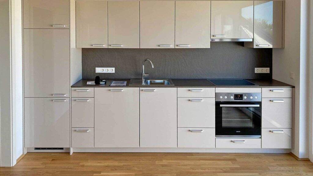 Die hochwertige Einbauküche fügt sich harmonisch in den Wohnraum ein und erfüllt mit moderner Ausstattung und klaren Linien höchste Ansprüche. Zwei weitere Zimmer bieten flexible Nutzungsmöglichkeiten als Schlafzimmer, Arbeits- oder Gästezimmer.
