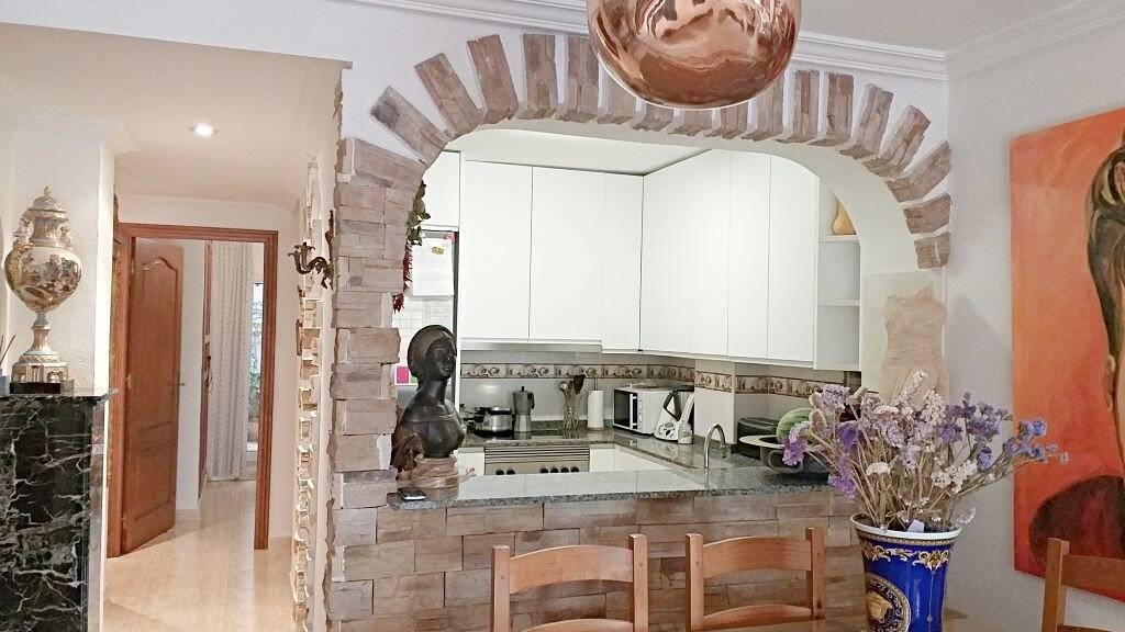 Die Wohnung mit Aufzug liegt im Zentrum der Stadt mit freiem Blick und sogar mit etwas Meerblick von der Terrasse, dem Wohnzimmer und der Küche. Die Fläche beträgt ungefähr 115m2. Es besteht aus 3Schlafzimmer, 2 Badezimmern und 1 Raum zum Beispiel für ein Büro. Helles Wohnzimmer mit Terrasse. Es gibt einen Essbereich neben der offenen Küche, gut ausgestattet.