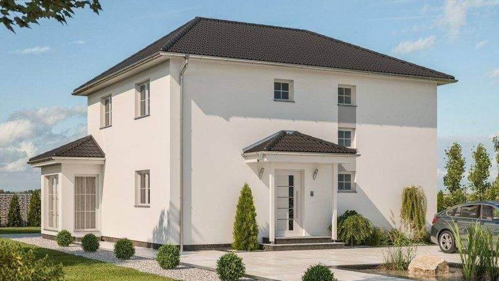 Wählen Sie die Variante mit Keller, ist im Erdgeschoss auch Platz fu?r ein Bu?ro. Im Obergeschoss befinden sich zwei Kinderzimmer, das Elternschlafzimmer verfu?gt u?ber eine großzu?gige Ankleide und ein großzügiges Familienbad.