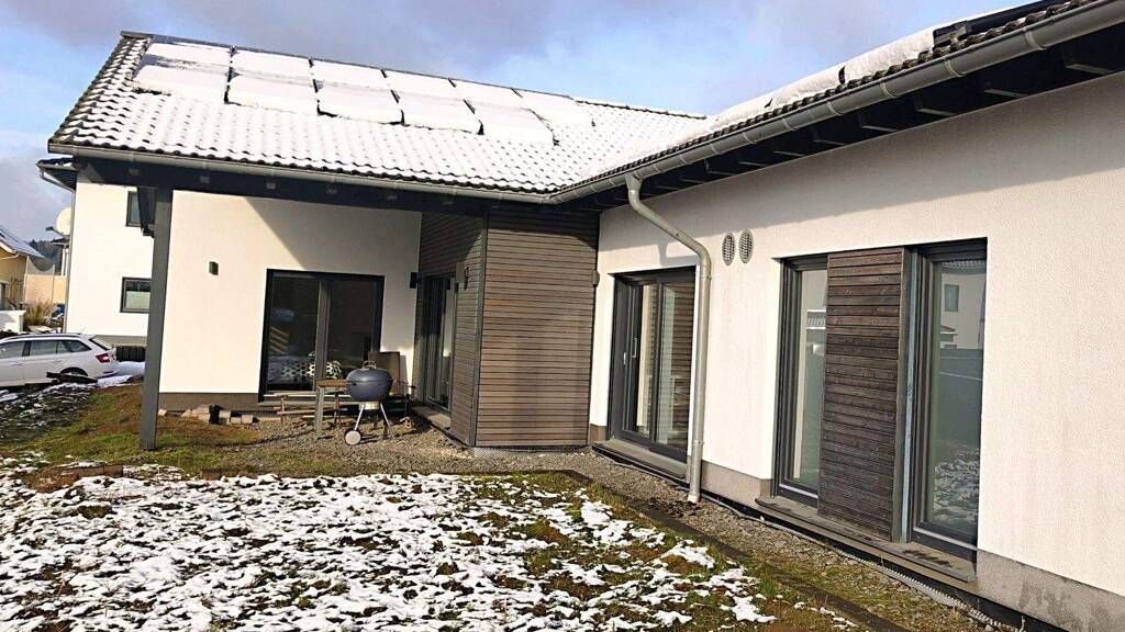 Dieser absolut neuwertige Bungalow ist noch keine 10 Jahre alt und überzeugt durch ein durchdachtes Wohnkonzept auf einer Ebene, modernste Haustechnik und eine hervorragende energetische Ausstattung. Herzstück des Hauses ist der großzügige, offene Wohn-, Ess- und Kochbereich, der ein modernes und kommunikatives Wohngefühl schafft. Große Fensterflächen sorgen für viel Tageslicht und bietet vom Essbereich einen schönen Ausblick. Der Grundriss ist klar in zwei Bereiche gegliedert: Ein komfortabler Hauptbereich mit großem Badezimmer und barrierefreier, großzügiger Dusche bietet Rückzug und Privatsphäre. Der separate Bereich für Kinder, Gäste oder Pflegekräfte verfügt über zwei weitere Zimmer sowie ein eigenes Duschbad – ideal für Familien, Mehrgenerationenwohnen in einer gemeinsamen Wohneinheit oder unterstützende Betreuung. Ein überdachter Terrassenbereich mit Weitblick lädt zu entspannten Stunden im Freien ein und erweitert den Wohnraum in den Sommermonaten. Ergänzt wird das Angebot durch einen praktischen Hauswirtschaftsraum sowie eine Garage mit direktem Zugang zum Haus. Zusätzlichen Stauraum bietet die volle Grundfläche des Hauses, die als Speicher ideal zum Lagern genutzt werden kann. Einziehen, wohlfühlen und langfristig komfortabel wohnen – dieses Haus vereint zeitgemäße Architektur, Funktionalität und hohe Wohnqualität auf einer Ebene. Die Aussenanlagen sind noch nach eigenen Vorstellungen anzulegen und zu gestalten.