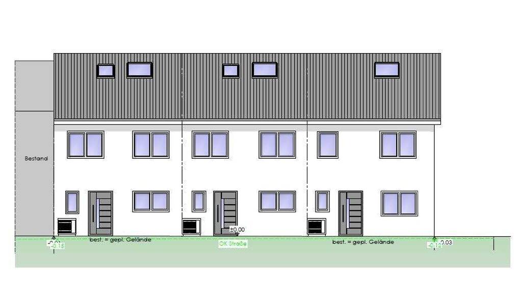 Das Reihenmittelhaus ist Teil eines neu gebauten 3-Spänners, der an zwei bereits vorhandene Reihenhäuser durch einen privaten Bauherrn angebaut wird. Das zu verkaufende Haus steht auf einem Südwest-Grundstück mit ca. 165 m². Die ausführende Baugesellschaft ist die lange am Markt tätige und sehr bekannte Firma Rötzer-Ziegel-Element-Haus GmbH. Vom Eingangsbereich mit Gäste-Toilette gelangen Sie in den großzügigen Wohn-/Essbereich mit offener Grundrissgestaltung zur Küche. Durch die großen und bodentiefen Fenster ist das Erdgeschoss sehr hell und lichtdurchflutet. Auf der großen Terrasse und dem angelegten Rasen können Sie nach Feierabend die Sonne genießen. Im Obergeschoss des Hauses befinden sich 3 Zimmer - Elternschlafzimmer, Kinderzimmer und Büro/Kinderzimmer (auf der Südwestseite ebenfalls mit bodentiefen Fenstern) sowie ein geräumiges Duschbad mit Toilette und zwei Waschbecken. Im Dachstudio sind ein weiteres Kinderzimmer und eine separate Toilette untergebracht. Die Wohn- und Schlafräume sind mit strapazierfähigem Vinylboden ausgelegt. Im Untergeschoss des Hauses sind zwei Kellerräume und ein Technikraum integriert. Diese Räume sind gefliest. Das Haus verfügt über eine energieeffiziente Luft-Wärmepumpe, die durch eine auf dem Dach befestigte Photovoltaik-Anlage den Strom bezieht. Das gesamt Haus - außer Technikraum und Keller 1 - ist mit Fußbodenheizung ausgestattet. Zum Haus gehört ein Außenstellplatz mit Strom. Die Fertigstellung ist für Ende März 2026 geplant.