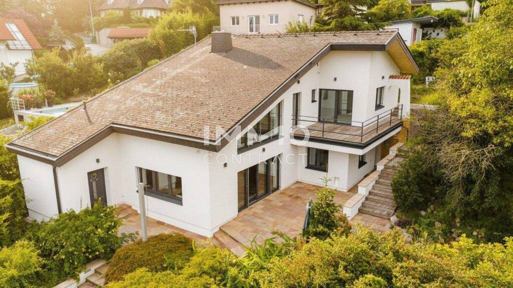 Diese außergewöhnliche Architektenvilla vereint Panorama, Privatsphäre und Designqualität in einer der begehrtesten Hanglagen am Hexenberg in der Carnuntumstraße. Auf einem großzügigen, sonnigen Grundstück gelegen, bietet das Anwesen ein seltenes Gesamtpaket aus exklusiver Wohnarchitektur, hochwertiger Generalsanierung und einzigartiger Gartenlandschaft mit Schwimmteich und separatem Gästehaus.