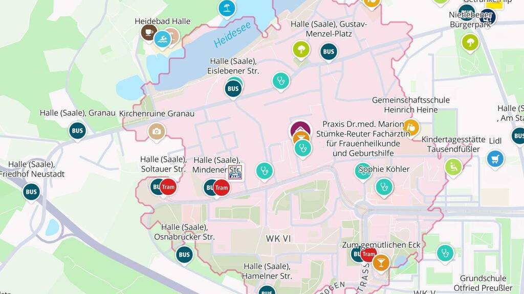 Die Straßenbahnhaltestelle ist fußläufig erreichbar und sorgt für eine schnelle Verbindung in die Innenstadt. Für Freizeit und Entspannung laden der nahegelegene Heidesee und die Dölauer Heide zu Spaziergängen, Sport oder Erholung in der Natur ein.