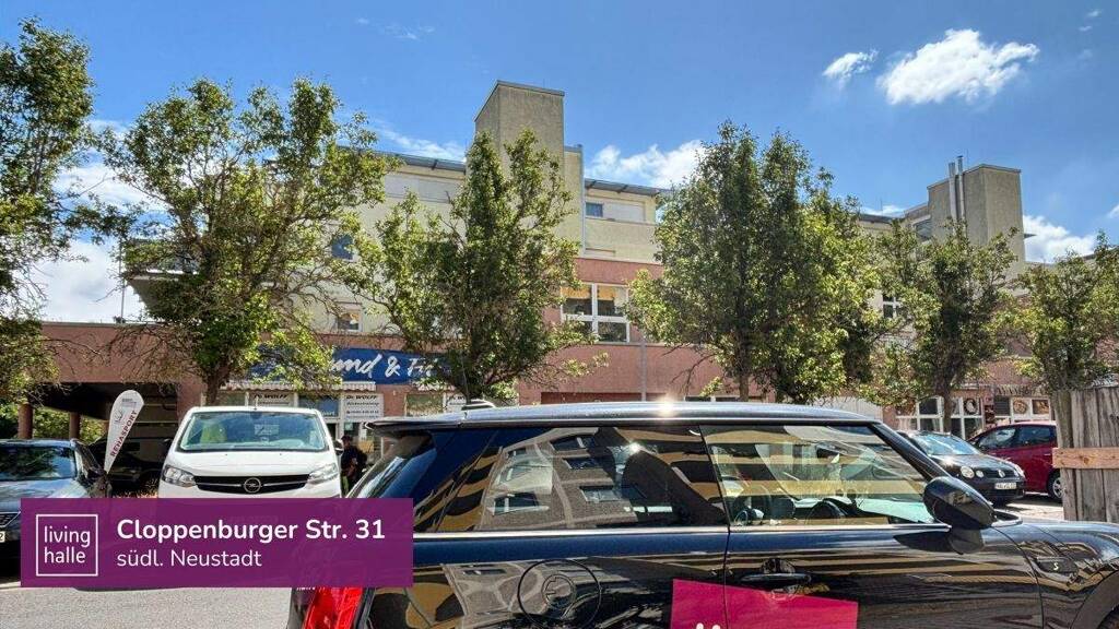 Die Wohnung liegt in der Cloppenburger Straße 32 in Halle und bietet eine ideale Mischung aus urbanem Komfort und Erholung im Grünen. Direkt im Gebäude finden Sie praktische Einrichtungen wie einen Supermarkt, medizinische Versorgung, Reha-Sportangebote, eine Postfiliale und einen Friseur - alles bequem vor Ort.