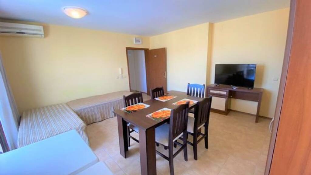 Das ist eine schöne Anlage in guter Lage, in der Nähe der Hotels "Marvel" und "Victoria Palace", ca. 200 Meter (3-4 Minuten zu Fuß) vom Strand im nördlichen Teil von Sonnenstrand, 8-10 Minuten zu Fuß von der Disco "Orange" und 18-20 Gehminuten vom Zentrum der Anlage und dem Hotel "Kuban" entfernt. Geeignet für saisonales oder ganzjähriges Leben. Der Komplex verfügt über eine gute Außenisolierung, PVC-Fenster in blassgelben Tönen. Der Komplex bietet:- 24-Stunden-Rezeption und Sicherheitsdienst im Sommer.- Zwei Swimmingpools mit jeweils einem Bereich für Kinder und Erwachsene.- Grillplatz- Unterhaltung für Kinder.- Tiefgarage und seitlicher Tiefgaragenplatz mit Schranke.- Hydrokosmetische Verfahren und Jacuzzi. Jährliche Wartungsgebühr: 7,2 EUR / qm