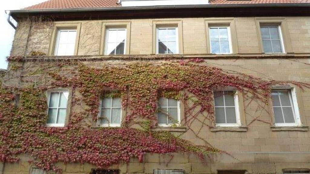 Die typische fränkische Sandsteinfassade ist erhalten. Die Fenster sind aus Kunststoff, die Räume sind hell und freundlich.