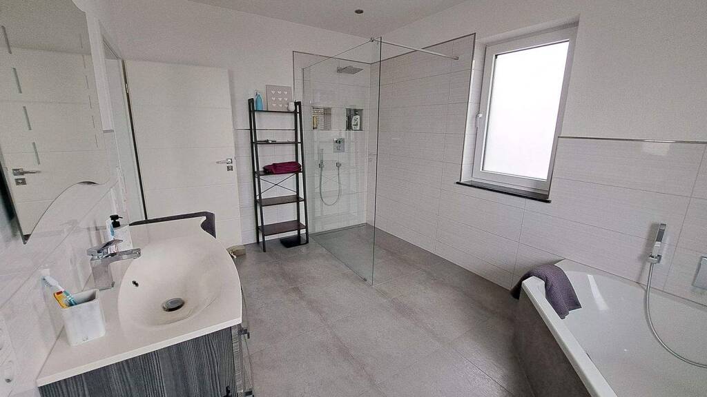 - Hochwertig ausgestattete Bäder mit Feinsteinzeugfliesen und Grohe / Villeroy&Boch Unterputzarmaturen/ Sanitär.