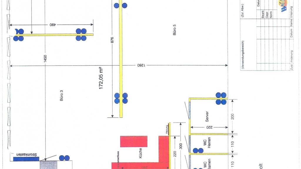 Großraumbüro (Büro 3, 4 und 5) mit festen Stellwänden unterteilt ca. 172 m²