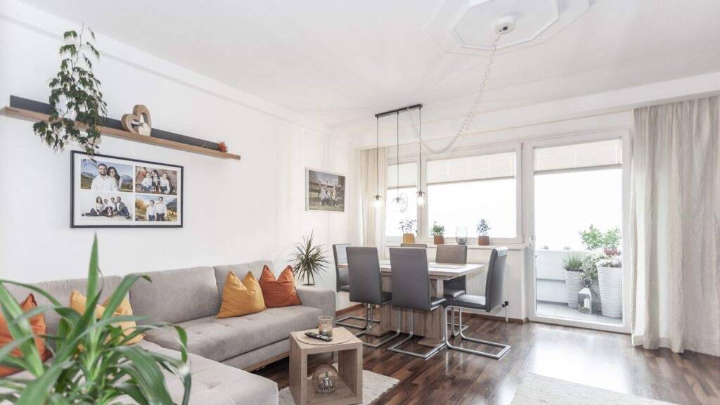 * GroĂźzĂĽgiges Wohnzimmer mit Zugang zum sonnigen Balkon * 2 ruhige Schlafzimmer * Separate, voll ausgestattete KĂĽche * Modernes Bad mit Dusche & Badewanne * Extra WC & praktischer Abstellraum * Eigene Garage & Kellerabteil inklusive
