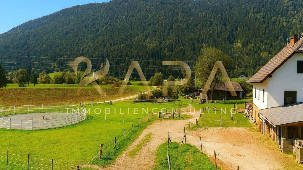 Umringt von vielen Bauernhöfen und Einfamilienhäusern und mit einem traumhaften Blick in die Ferne und auf die Berge fühlt man sich hier angekommen. Die Gail rauscht in wenigen Metern am Haus vorbei und bietet eine ideale Wander- und Reitstrecke.