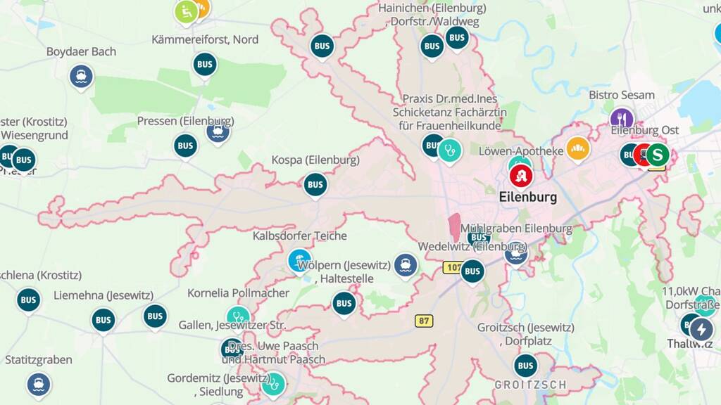 Alles, was Sie zum Leben brauchen, finden Sie in Eilenburg. In einem Umkreis von 5 km vom Wohnhaus entfernt, befinden sich verschiedene Einkaufsmöglichkeiten, Kitas, Schulen und medizinische Versorgungseinrichtungen. Von verschiedenen Arztpraxen, Apotheken bis hin zur Klinik Eilenburg. Über unsere Karte können Sie direkt einsehen, was Sie in wenigen Minuten zu Fuß oder mit dem Auto erreichen können.