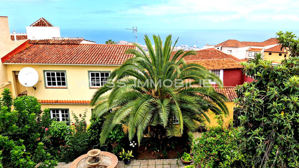 - Gepflegtes, original erhaltenes Stadthaus im Zentrum von La Orotava - Errichtet im 18. Jahrhundert - Teil des historischen Erbes der Stadt, mit berühmter Vergangenheit - Sehr gut geeignet als exklusives Wohnhaus mit Einliegerwohnungen für Gäste, oder - Wohnprojekte wie Coliving oder Seniorenwohnanlage, oder - Coworking im Zentrum der beliebten Altstadt La Orotavas - 3 getrennte Eingänge, Immobilie in mehrere Wohneinheiten aufteilbar - 3 Stromzähler, 2 im Haupthaus und einer in der Gästewohnung des Nebengebäudes - 5 Wohn- und Speisezimmer zu insgesamt 8 Schlafzimmern und 6 Bädern - Wertvolle hohe Kassetten- und Holzbalkendecken - Viele weitere schöne Holzeinbauten, Holztreppen und Holzdielenboden - Ausgeglichenes Wohnklima durch sehr starke Außenwände - Nebengebäude hinter dem großen Patio enthalten eine separate Gästewohnung im Obergeschoss und zwei große Garagen sowie Wirtschaftsräume im Erdgeschoss - Große Dachterrasse mit schönem Meerblick über die Altstadt und die Silhouette von Puerto de la Cruz - Großer Patio mit vielfältiger Bepflanzung, zweiter Patio mit großer Terrasse am Haus - Virtual Tour: https://www.idealista.com/inmueble/106352167/virtual-tour/1/