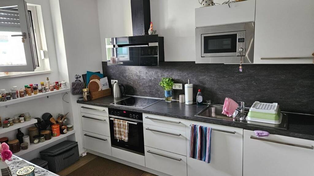Die Wohnung hat über einen modernen Wohnungsschnitt und ist mit Vinyl-Designbelag in den Wohnräumen und Küche sowie mit Fliesen im Bad ausgestattet. Das verfügt über eine Badewanne, und einen Waschmaschinenstellplatz. Alle Fenster sind mit Außenjalousien ausgestattet. Die Einbauküche mit allen üblichen elektrischen Geräten sowie der Tiefgaragenstellplatz sind im Kaufpreis enthalten. Der vorhandene Aufzug erhöht die Attraktivität des Angebots.