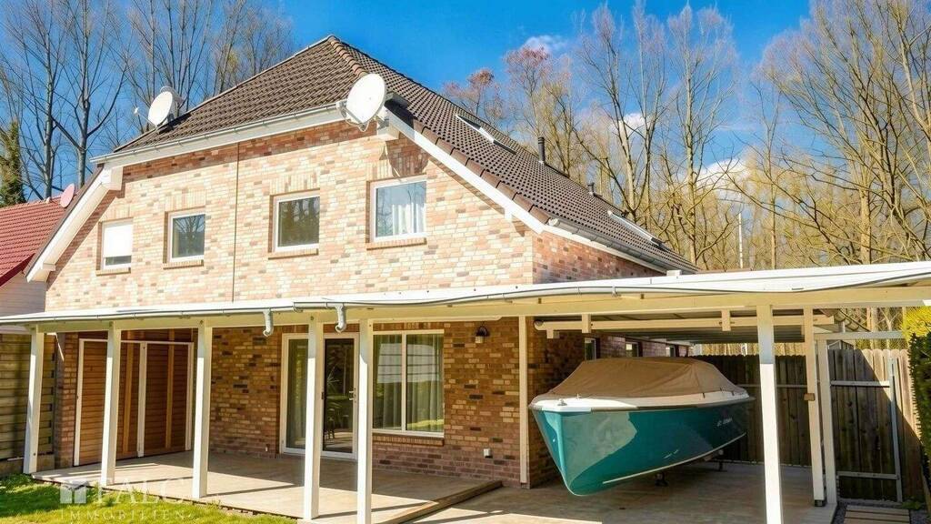 Der Außenbereich überzeugt durch eine Terrasse mit Garten, die zum Entspannen und Verweilen einlädt. Ein Carport sowie ein Stellplatz bieten komfortable Parkmöglichkeiten direkt am Haus.