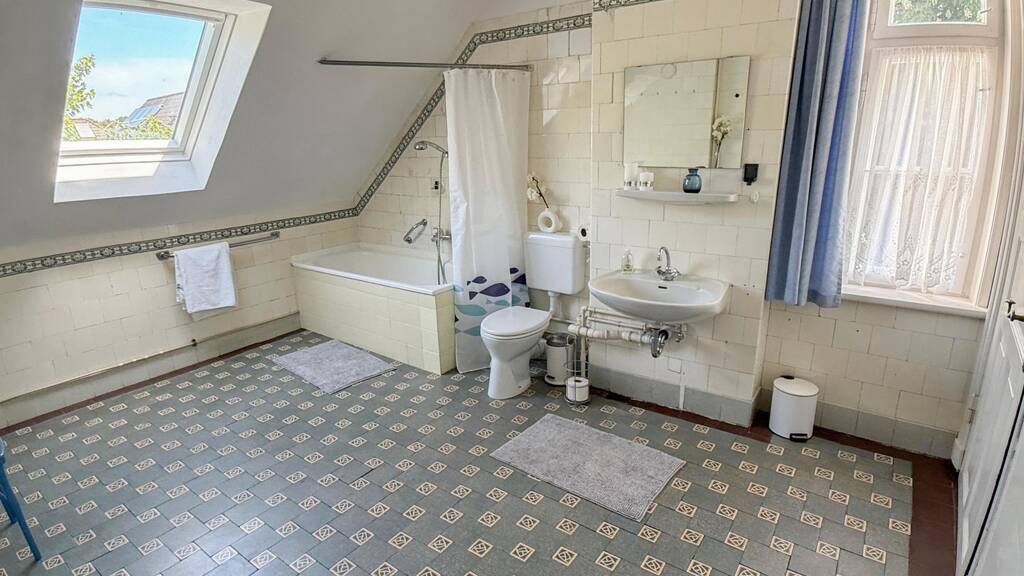 Ein lichtdurchflutetes Schlafzimmer mit praktischem Einbauschrank, ein Gästezimmer sowie ein Arbeitszimmer runden das Raumangebot im Erdgeschoss ab. Im Obergeschoss erwartet Sie ein zweites, wohnliches Wohnzimmer mit Zugang zum Balkon, sowie drei weitere individuell nutzbare Zimmer. Das stilvolle Vollbad sowie zusätzlicher Stauraum im geräumigen Spitzboden bieten zusätzlichen Komfort.