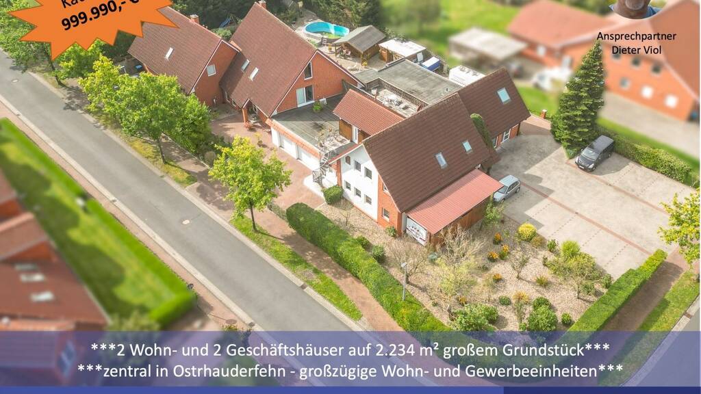 Sie suchen vielseitige und lukrative Immobilien mit viel Potenzial? Dann sind Sie hier genau richtig! Diese großzügigen Wohn- und Gewerbeeinheiten (ca. 370 m² Wohnfläche plus ca. 380 m² Nutzfläche) befinden sich auf einem 2.234 m² großen Grundstück in einer zentralen Lage von Ostrhauderfehn.