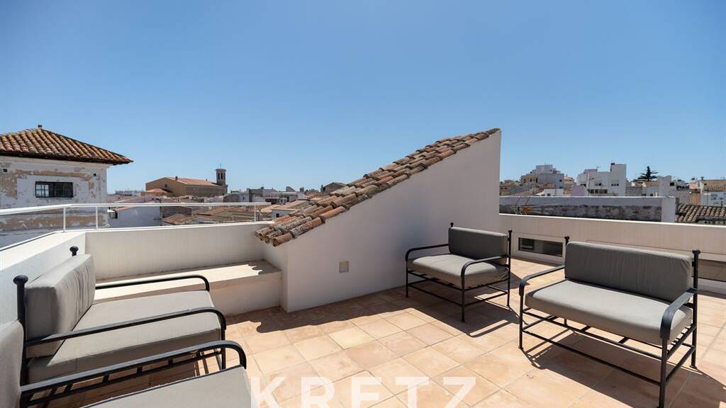 Porten de Mahon von Menorca. Im Herzen der schönsten historischen Straße der Stadt befindet sich ein sechsstöckiges Familienhaus mit etwa 650 m², das von einem renommierten Architekten sorgfältig renoviert wurde. Erdgeschoss: Eingang, der zu einem doppelten Wohnzimmer führt, das mit trockenem Stein und originalen Holzbalken übersät ist. Voll ausgestattete separate Küche mit ungestörtem Blick über den Hafen von Maó. Vom 1. bis 5. Stock gibt es 6 Suiten mit Umkleideräumen, darunter 3 mit Blick über den Hafen. Im obersten Stockwerk befindet sich ein großes Dach mit Blick auf den Hafen von Mahon. Im Keller befand sich eine einstöckige Terrasse, die vor der Sonne geschützt war. Erstklassige Einrichtungen (Kino, Jacuzzi, Hammam, Massageraum). Klimaanlage. Aufzug auf 4 Stockwerken. Charakterhaus nur 5 Gehminuten vom Hafen von Mahon entfernt, mit seinem berühmten Fischmarkt, Restaurants und Geschäften.