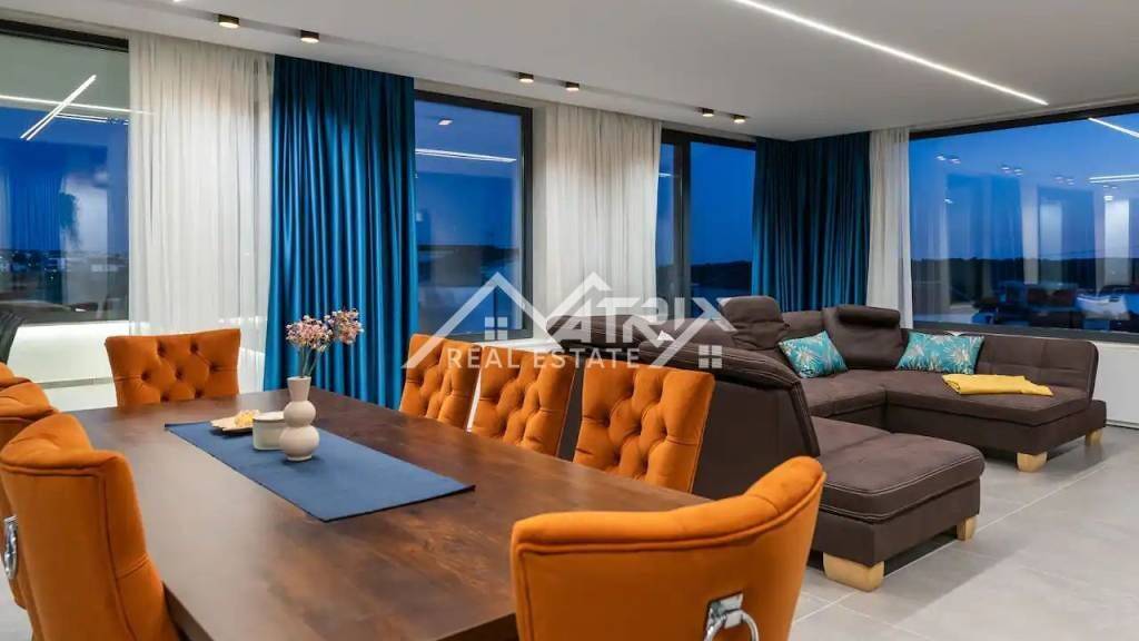 Diese luxuriöse moderne Villa befindet sich nur 250 Meter vom Meer entfernt, an einem der attraktivsten Standorte in diesem Teil Istriens. Mit einer Gesamtwohnfläche von 400 m² erstreckt sich diese Immobilie über drei Etagen und umfasst einen 200 m² großen Garten, der Privatsphäre und Raum zur Entspannung bietet.