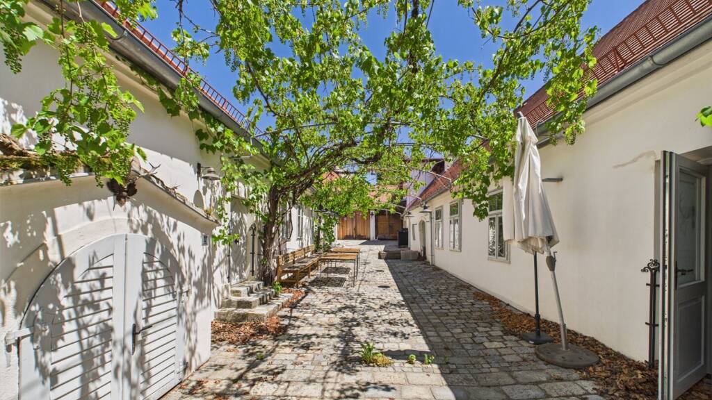 Das um 1722/24 errichtete historische Gasthaus "Galbrunerhof" präsentiert sich als charmantes Gebäudeensemble bestehend aus zwei selbständigen Bauteilen, die straßenseitig zur Rainharterstraße durch einen gemauerten Torbogen miteinander verbunden sind. Das Ensemble umschließt einen reizvollen Innenhof und erstreckt sich durchgängig von der Rainharterstraße bis zur Zwettler Straße. Nach einer umfangreichen und behutsamen Generalsanierung im Jahr 2016, die durch einen 51-seitigen Restaurierungsbericht dokumentiert ist, erstrahlt das Denkmalschutz-Objekt in neuem Glanz bei gleichzeitiger Wahrung seiner historischen Authentizität.
