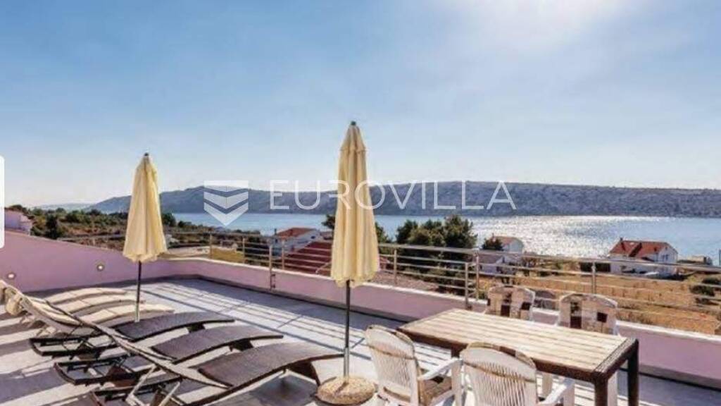 Na jednom od najsuncanijih i najljepsih otoka na Jadranu, Rabu, nalazi se ova predivna vila s cetiri prostrana apartmana.Sastoji se od prizemlja i tri kata. Prizemlje se sastoji od ulaznog prostora,dvije spavace sobe svaka sa svojom kupaonom, komfornim dnevnim boravkom, kuhinjom i blagovaonicom. Iz dnevnog boravka i blagovaonice se izlazi na natkriveni balkon. Unutarnjim stubama se ide na prvi kat koji ima isti raspored kao prizemlje. Unutarnjim stubama se ide na drugi kat koji se sastoji od ulaznog prostora open space dnevnog boravka, kuhinje i blagovaonice i dvije spavace sobe svaka sa svojom kupaonom. Unutarnjim stubama se ide na treci kat koji se nalazi u potkrovlju, a sastoji se od jedne spavace sobe, kupaone, open space kuhinje, blagovaonice i dnevnog boravka iz kojeg se izlazi na komfornu terasu velicine 70 m2 s koje se prostire predivan pogled na more i grad Barbat.U cijeni nekretnine je i zemljiste ispred ville velicine 552 m2 s projektom i dozvolom za gradnju novog objekta.Ostale informacije na upit.... Vise na eurovilla.hr, ID: 605254