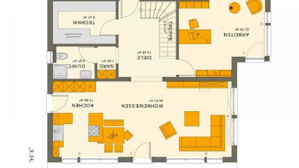 Die ideale Ausbaustufe für Heimwerker: außen perfekt, innen mit kompletter Heizungs-, Elektro- und Sanitärinstallation - bis zum Estrich alles dabei.