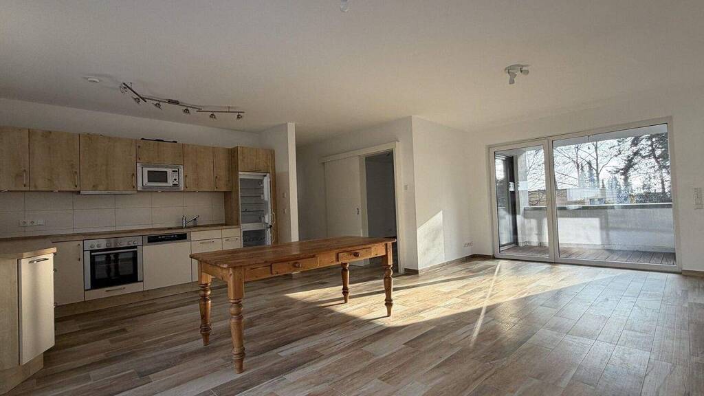 Der großzügige Wohnbereich mit offener Küche bildet das Herzstück der Wohnung und lädt zum verweilen und genießen ein. Die vorhandene Einbauküche ist Eigentum der aktuellen Mieter und kann bei Interesse übernommen werden.