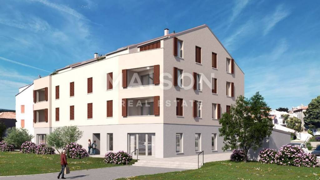 In einer außergewöhnlichen und selten verfügbaren Lage im strengen Zentrum der Stadt Cres, nur 50 Meter vom Meer entfernt, wird eine hochwertige Wohnung im dritten Stock eines modernen Neubaus mit Aufzug und Tiefgarage angeboten. Die Wohnung mit der Bezeichnung 3.2 und einer Gesamtwohnfläche von 84 m² besteht aus einem Eingangsbereich, Abstellraum, Gäste-WC, Badezimmer sowie einem großzügigen offenen Wohnbereich mit Küche und Esszimmer sowie zwei Schlafzimmern. Alle Räume haben Zugang zu einer großzügigen Dachterrasse, die zusätzlichen Wert sowie ein ausgeprägtes Gefühl von Luxus und Privatsphäre bietet. Zur Immobilie gehören ein Garagenstellplatz in der Tiefgarage von 14,30 m² sowie ein Abstellraum von 3,07 m², was hohen Wohnkomfort im Stadtzentrum gewährleistet. Das Gebäude ist modern konzipiert und umfasst insgesamt 14 Wohneinheiten. Die Wohnungen werden schlüsselfertig verkauft, mit hochwertiger Ausstattung wie Fußbodenheizung, Inverter-Klimaanlagen, hochwertigen Bodenbelägen, modernen Walk-in-Bädern und Sanitäranlagen renommierter Hersteller. Diese Immobilie ist eine echte Rarität auf dem Markt und eignet sich ideal für ganzjähriges Wohnen sowie als sichere Investition oder touristische Vermietung an einer der attraktivsten Lagen auf der Insel Cres.