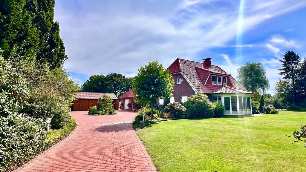 Beeindruckendes Landhaus-Anwesen mit Wintergarten- Pavillon, Oldtimer- Garage, eingezäuntem Weideland in Wiefelstede- Zentrum