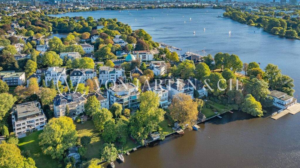 Die Wohnung befindet sich in einer der begehrtesten Adressen der Hamburg, unmittelbar an der Außenalster, und eröffnet einen Blick, der in dieser Form nur selten zu finden ist. Wasser, Weite und stilvolle Architektur prägen hier ein Umfeld, das hanseatische Zurückhaltung mit lebendiger Stadtkultur auf besondere Weise verbindet.