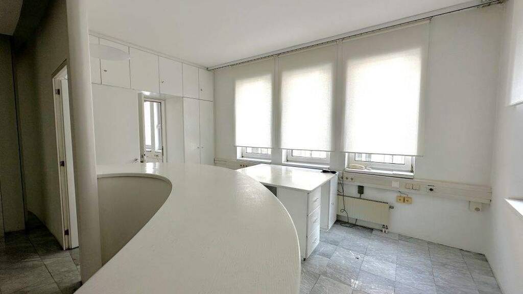 Vorraum mit Warte- und Empfangsbereich, 2 große Räume, Nebenraum, Teeküche, Durchgang, Damen und Herren WC.