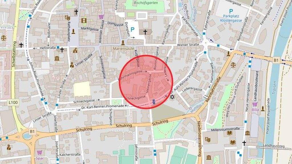 Durch die zentrale Stadtlage sind öffentliche Einrichtungen (Rathaus, Landesregierung, Bezirks- und Landesgericht, Innenstadt, Bahnhof, Versicherungsanstalten, etc.) auf kurzen Wegen rasch erreichbar. In der nahegelegenen Fußgängerzone sind sämtliche Einkaufs- und Versorgungsmöglichkeiten gewährleistet.