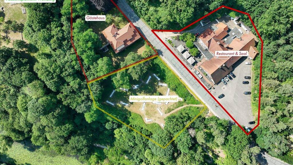 Das Grundstück hat eine Größe von ca. 6.061 Quadratmeter. Eine weitere Fläche, auf der sich ein Minigolfplatz mit 18 Bahnen befindet ist gepachtet, könnte aber eventuell auch erworben und anders genutzt werden.