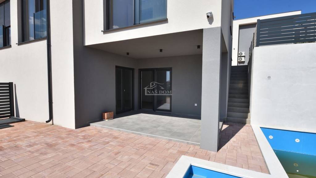In attraktiver Lage in Vodice wird eine moderne Doppelhaushälfte S2 von höchster Qualität mit Pool, großzügigem Garten und offenem Blick auf das Meer und die Stadt verkauft.