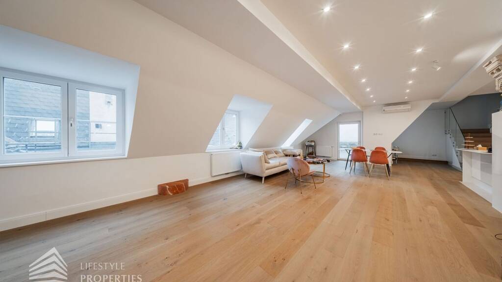 Die traumhafte Wohnung befindet sich im 1. und 2. Dachgeschoss eines gepflegten Altbaus und erstreckt sich über eine großzügige Wohnfläche von ca. 175 m². Diese teilt sich auf in eine Wohnküche, 3 Zimmer, 2 Badezimmer, ein Gäste-WC sowie einen praktischen Abstellraum. Eine Terasse sowie ein charmanter Balkon runden das Angebot perfekt ab. In den Wohnräumen wurde edles Parkett verlegt, die Nassräume sind mit modernen Fliesen ausgestattet. Beheizt wird mittels Gasetagenheizung. Eine kühle Atmosphäre an warmen Sommertagen garantiert die installierte Klimaanlage.