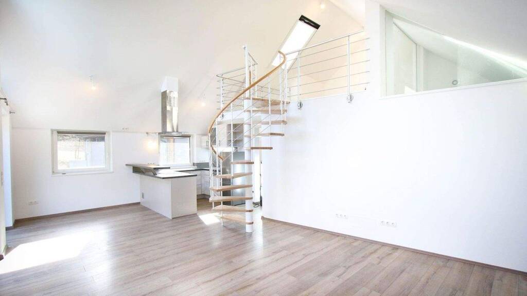 Highlights: - Offenes Raumkonzept mit Galerie: Moderner Wohnbereich mit fließendem Übergang zur Galerie und Blickfenster ins Badezimmer - flexibel gestaltbar. - Großzügige Raumhöhe: Über 5 Meter hohe Decke sorgt für ein luftiges, lichtdurchflutetes Wohngefühl mit direktem Blick ins Grüne. - Direkter Zugang zur Natur: die Lage am Stadtrand mit direktem Zugang zu einen privaten Spazierweg über Felder und mit Weitblick über St. Pölten. Die Traisen liegt nur 5 Gehminuten entfernt. - Außenbereich: vom Wohnbereich aus sieht und gelangt man direkt auf eine ca. 30 m² große Terrasse mit angrenzendem Garten (ca. 56 m²)